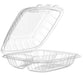 Clear 3-compartment plastic hinged container 9" x 9" - Pack of 75